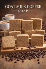 Saponified Olive oil, coconut oil,Pam oil,shea butter, fresh ground coffee,fresh goat milk, with hazel nuts scent.