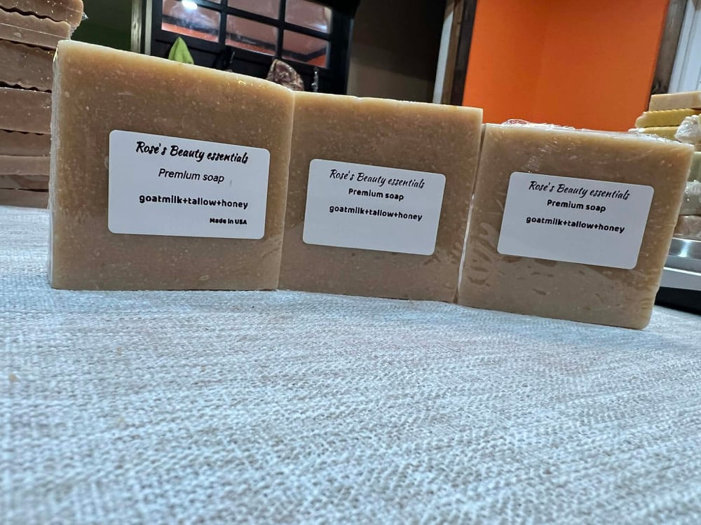 Saponified olive oil,tallow,honey, palm oil, coconut oil, fresh goat milk.